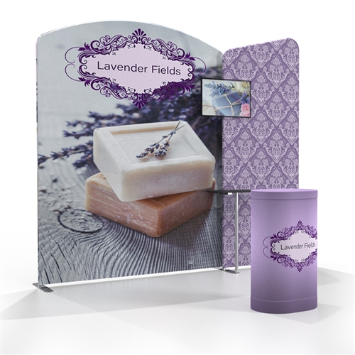 Modular has officially met tube frames! Wave Tube Modular tube display system lets you configure multiple shapes, sizes and frames. Each tube frame easily connects, using aluminum tubing with push button snaps to lock and to attach to feet. Feet have two mounting points to connect frames side-by-side. Single-sided stretch fabric graphics pull over the frames and zip closed underneath. Medium Hard Case included.