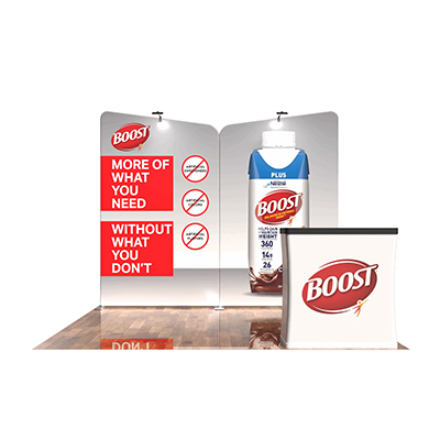 Also available is our Featherlite Medallion premium stretch fabric displays which feature modular designs and customizable add-on options. Perfect for those wanting a more upscale look to match your company's image and brand.