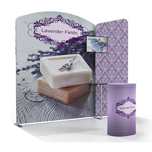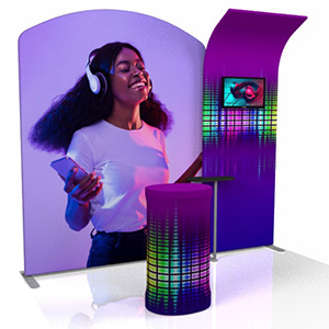 The future of large, affordable marketing displays is here. The Wave Tube displays are built with a simple and lightweight, yet strong, aluminum tube frame zipped inside a wrinkle-resistant polyester fabric graphic print. Sets up quickly without tools. Print double-sided fabric graphics for a full walk-around experience or flip your panel around to display an alternative message when needed. Accessories are available for your display including waterfall shelving, monitor mounts and case to counter kits. Choose from designed kits or mix and match to create your own.